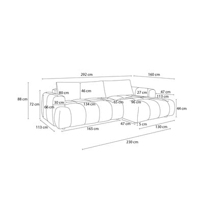 Žinylková, rozkládací/s úložným prostorem, pravý roh/s lenoškou, taupe, čtyřmístná, šířka 292 cm