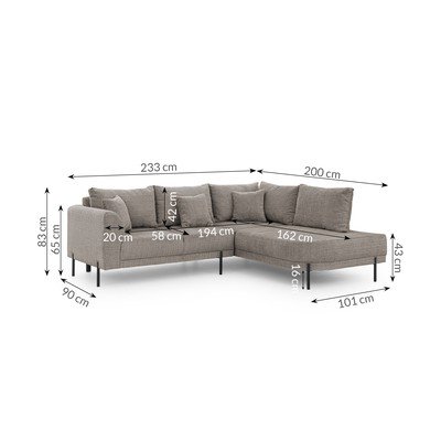 ŽinylkováPravý roh/do LTaupeVhodné pro mazlíčky/odolné vůči skvrnámČtyřmístnáŠířka 233 cm