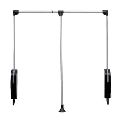 Sklápěcí šatní tyč s rukojetí, s nosností až 10 kg a automatickým měkkým zpětným chodem, potěší každého milovníka organizace. Tato tyč má nastavitelnou šířku od 87 do 120 cm. Boční upevnění má rozměr 30 x 10 cm.