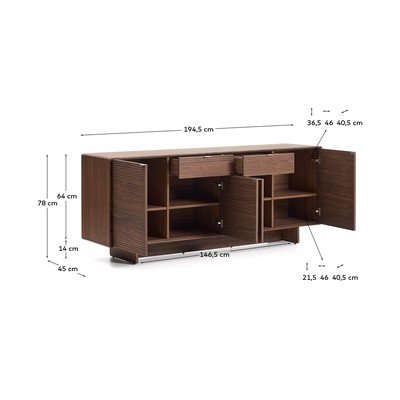 V dekoru ořechuZ MDFPovrchová úprava: dýhaTmavě hnědáŠířka 194,5 cmVýška 78 cmHloubka 45 cm
