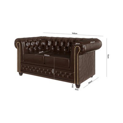 Z imitace kůže, chesterfield, tmavě hnědá, voděodolná/vhodné pro mazlíčky/odolné vůči skvrnám, dvoumístná, šířka 148 cm