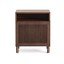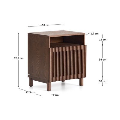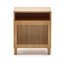 Noční stolek Beyla od značky Kave Home. Charakteristický lamelový design dvířek vytváří vizuální rytmus a hru světla, navíc nabízí tiché zavírání a nastavitelné nožičky.