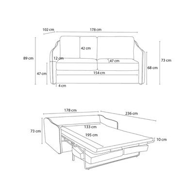 Na každodenní spaní/rozkládacíTmavě modráDvoumístnáŠířka 178 cmHloubka 102 cmHloubka sedáku 52 cm