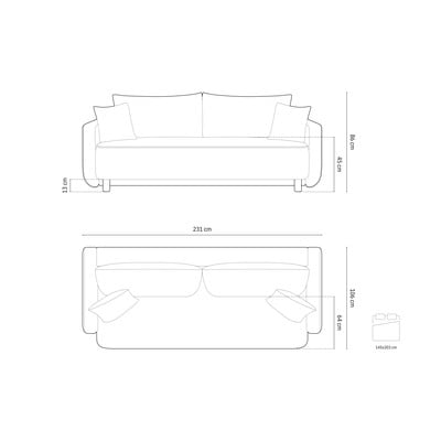 Béžová rozkládací pohovka s úložným prostorem 231 cm Elen – Micadoni
