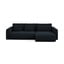 Sametová, rozkládací/s úložným prostorem, levý roh/s lenoškou, tmavě modrá, čtyřmístná, šířka 278 cm
