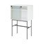 Hlavní úložný prostor je chráněn posuvnými dveřmi, z nichž jedna je částečně neprůhledná, což umožňuje diskrétní uložení obsahu a zároveň dodává vitríně zajímavý vzhled. Uvnitř najdete praktické police pro uspořádání vašich věcí.