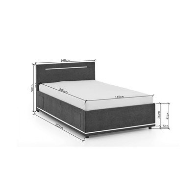 140x200 cm, bez roštu, čalouněná, s osvětlením/s USB portem, tmavě šedá