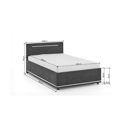 120x200 cm, s úložným prostorem, s roštem, čalouněná, s osvětlením/s USB portem, tmavě šedá
