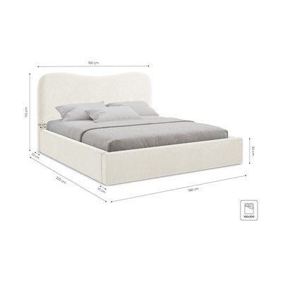 Postel Kahai od značky Makamii je elegantní dvoulůžková postel, která kombinuje pohodlí s praktickým úložným prostorem. Její čalouněný rám a vlnitě tvarované čelo dodávají ložnici moderní a útulný vzhled.