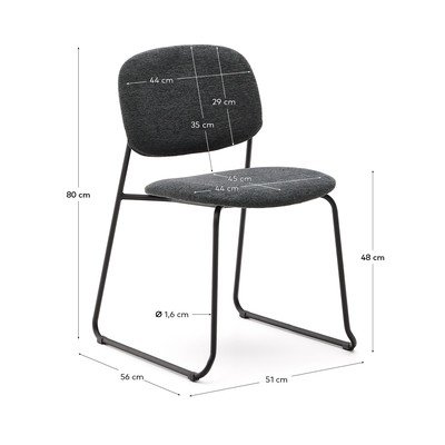 Židle Meli od značky Kave Home je stohovatelná, což usnadňuje její skladování. Opěradlo i sedák jsou čalouněné žinylkou a mají vnitřní výztuž z topolové překližky.