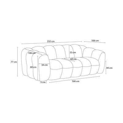 Z textilie bouclé, tmavě šedá, dvoumístná, šířka 232 cm