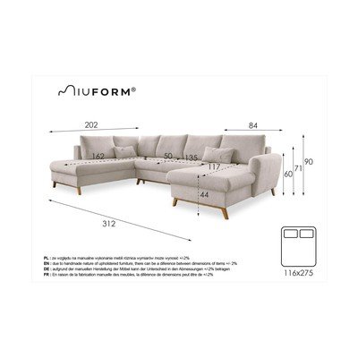 Pohovka Lagom v sobě ukrývá jednoduchost, funkčnost a estetiku. Díky tvaru do písmene U je velká a prostorná. Základní konstrukce a vysoké nohy jsou z bukového dřeva, které je stabilní a přináší do interiéru skandinávský styl. Disponuje rozkládacím režimem a úložným prostorem. Můžete ji tedy využít jako postel pro hosty. Nechte se oslnit značkou Miuform.