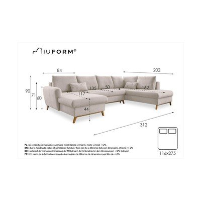 Pohovka Lagom v sobě ukrývá jednoduchost, funkčnost a estetiku. Díky tvaru do písmene U je velká a prostorná. Základní konstrukce a vysoké nohy jsou z bukového dřeva, které je stabilní a přináší do interiéru skandinávský styl. Disponuje rozkládacím režimem a úložným prostorem. Můžete ji tedy využít jako postel pro hosty. Nechte se oslnit značkou Miuform.
