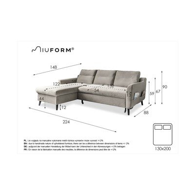 SametováRozkládací/s úložným prostoremLevý roh/s lenoškouVoděodolná/vhodné pro mazlíčkyTmavě šedáTrojmístnáŠířka 224 cmHloubka 148 cmHloubka sedáku 54 cm