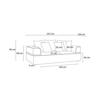 Žinylková, tmavě šedá, trojmístná, šířka 237 cm