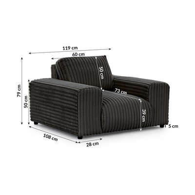 Tmavě šedé manšestrové křeslo Justin – Ropez