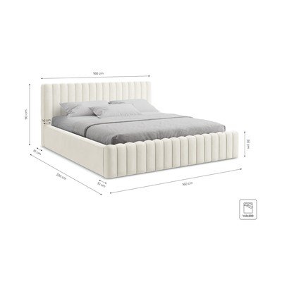 Součástí postele je rošt a praktický úložný prostor o rozměrech 140 x 200 x 18 cm, kam můžete uložit lůžkoviny nebo sezónní oblečení.
