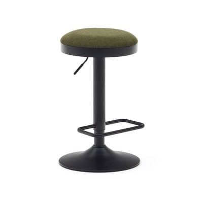 Tmavě zelené čalouněné barové stoličky v sadě 2 ks s nastavitelnou výškou (výška sedáku 53,5 cm) Zaib – Kave Home