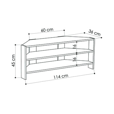 Rohový, v dekoru dubu, z MDF, povrchová úprava: melamin, matný, v přírodní barvě, šířka 114 cm, výška 45 cm, hloubka 36 cm