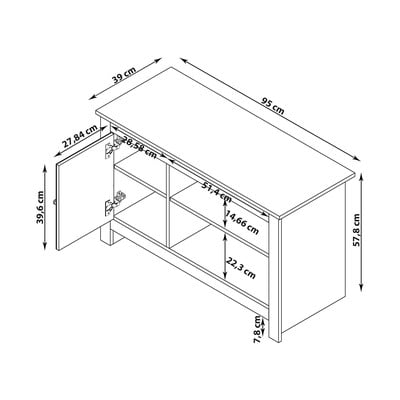 V dekoru dubu, z MDF, povrchová úprava: folie, šedý, šířka 95 cm, výška 58 cm, hloubka 39 cm