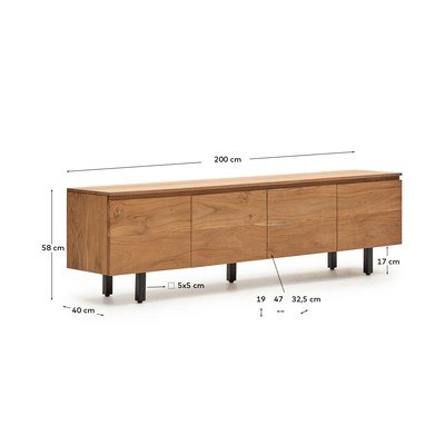 TV stolek UxueZ masivu akácie, povrchová úprava: bělení, matný, v přírodní barvě, šířka 200 cm, výška 58 cm, hloubka 40 cm