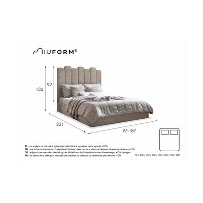 Dreamy Aurora je velmi zajímavé svým jedinečným stylem provedení. Snadno čistitelný sametový materiál zdůrazňuje komfort a vznešenost designu. Výška polstrovaného měkkého čela umožňuje pohodlné odpočívání i ve vzpřímené poloze. Pod rámem se nachází velký úložný prostor, který je snadno přístupný.