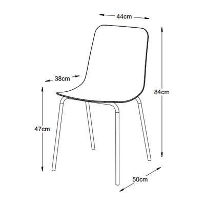 Kvalitní plastová židle, kovové nohy, zdá se, že je pevná a vypadá dobře, elegantně vyřešila designový problém.
