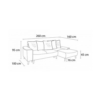 SametováRozkládací/s úložným prostoremPravý rohModrá/tyrkysováTrojmístnáŠířka 260 cm