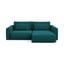 Tyrkysová sametová rozkládací/s úložným prostorem rohová pohovka (levý roh/s lenoškou) Kapua – Makamii