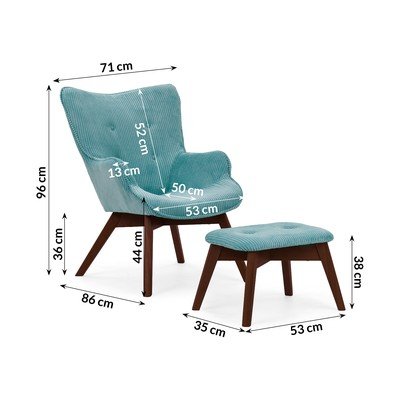 Tyrkysové manšestrové křeslo s podnožkou Niko – Ropez