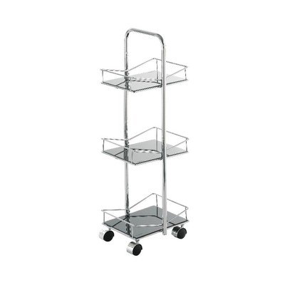 Koupelnový regálVe stříbrné barvě, šířka 25 cm, výška 81 cm, na kolečkách