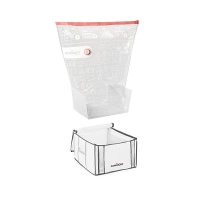 Přebytečný vzduch pohodlně odsajete svým domácím vysavačem. Vzhledem k jednocestnému ventilu se nemusíte bát, že by se vak po odsátí vzduchu opět nafoukl. Dále je vybavený transparentními okénky usnadňující identifikaci obsahu a integrovanými stahovacími popruhy pro skladování i ve svislé poloze.
