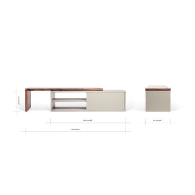 TV stolek MoveRohový, v dekoru ořechu, z dřevotřísky, povrchová úprava: dýha/povrchová úprava: barva, matný, šedý/v přírodní barvě, šířka 110 cm, výška 32 cm, hloubka 41 cm