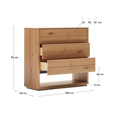 V dekoru dubu, z MDF, povrchová úprava: dýha, v přírodní barvě, šířka 100 cm, výška 97 cm, hloubka 40 cm