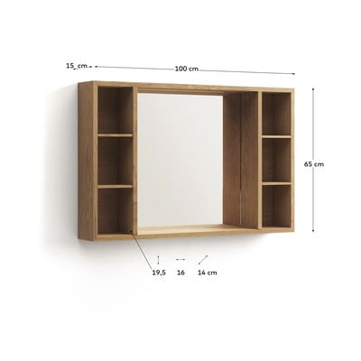 Závěsná/se zrcadlem, z teakového dřeva, povrchová úprava: lak, v přírodní barvě, šířka 100 cm, výška 65 cm, hloubka 15 cm