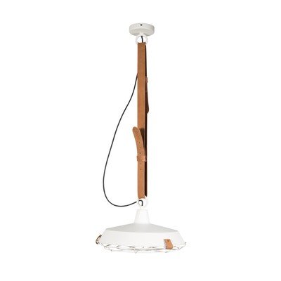Závěsné svítidlo DekS kovovým stínidlem, kovové/kožené, bílé/hnědé, ø 12 cm, výška 110 cm