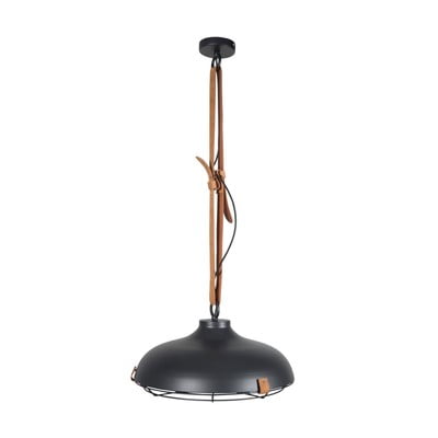 Závěsné svítidlo DekS kovovým stínidlem, kovové/kožené, šedé/hnědé, ø 12 cm, výška 114 cm