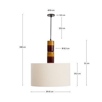 Závěsné svítidlo Mavran od značky Kave Home. Glazovaná keramická základna s pruhy vnáší do prostoru dynamiku a osobitost.
