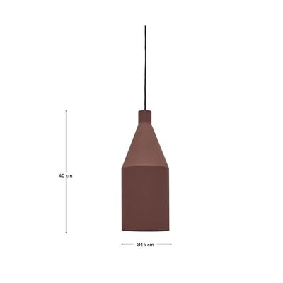 Závěsné svítidlo Peralta v terakotové barvě s kovovým stínidlem je exkluzivním designem značky Kave Home. Svítidlo je kompatibilní se žárovkami typu E27 s maximálním výkonem 40 W. Žárovka není součástí balení.