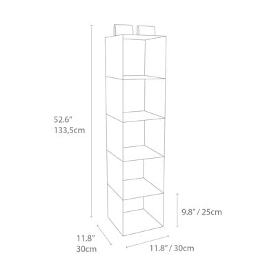 pěti přihrádkám pomůže se skladováním oděvů. Je ideální pro pověšení do šatní skříně či na tyč stojanu. Konstrukce je vyrobena z kartonu a odolného polyesteru. Drží pevně díky suchému zipu. Produkt lze v případě potřeby
