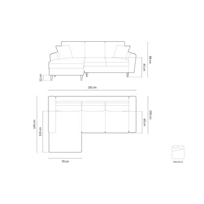 Manšestrová, rozkládací/s úložným prostorem, levý roh/s lenoškou, zelená, vhodné pro mazlíčky, trojmístná, šířka 241 cm