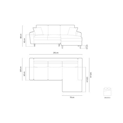 Manšestrová, rozkládací/s úložným prostorem, pravý roh/s lenoškou, zelená, vhodné pro mazlíčky, trojmístná, šířka 241 cm