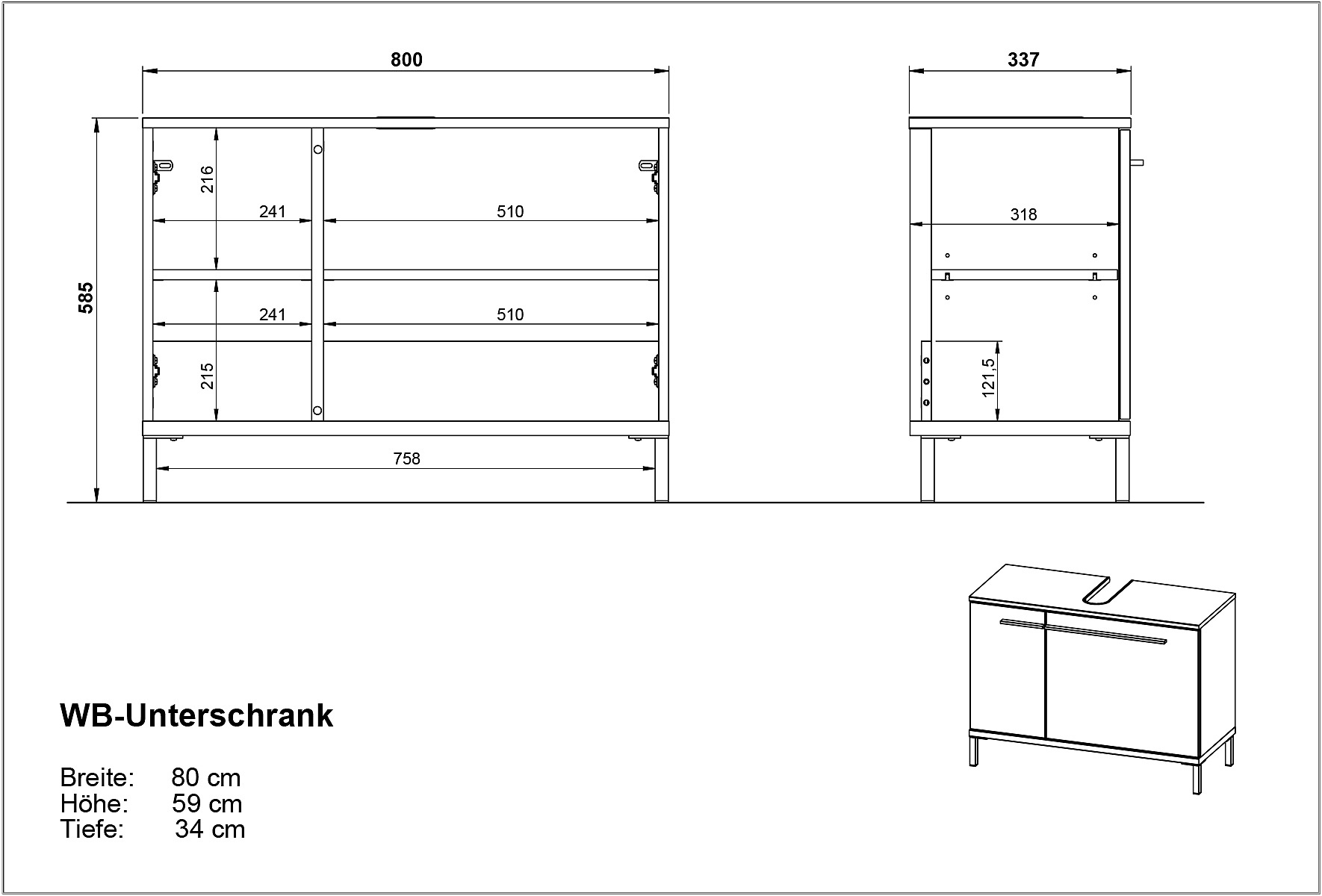 Skříňka pod umyvadlo Laurino od značky Germania. Nabízí dostatek úložného prostoru a je navržena tak, aby dokonale zapadla pod vaše umyvadlo.