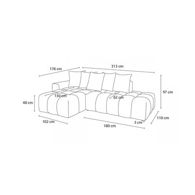 Sametová, pravý roh/s lenoškou, zelená, voděodolná/odolné vůči skvrnám, vícemístná, šířka 313 cm