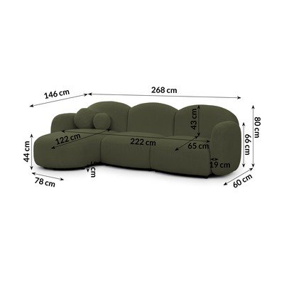 Z textilie boucléLevý roh/s lenoškouZelenáVoděodolná/odolné vůči skvrnámČtyřmístnáŠířka 268 cm