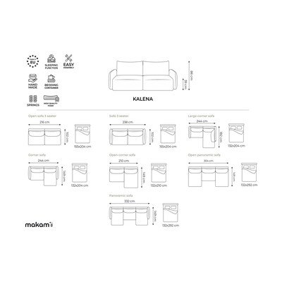 Pohovka Kalena od značky Makamii. Nabízí praktické rozložení a úložný prostor pro snadné uskladnění věcí.