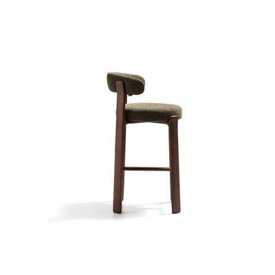 Barová židle Granite od značky Kave Home. Vyniká čalouněním z recyklovaného polyesteru a konstrukcí z FSC certifikovaného dřeva, což zaručuje odpovědnou výrobu.