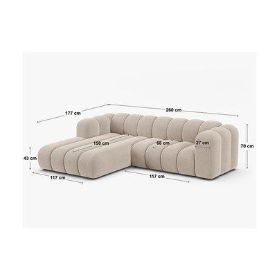Béžová žinylková rohová pohovka (pravý roh/s lenoškou) Lupine – Micadoni