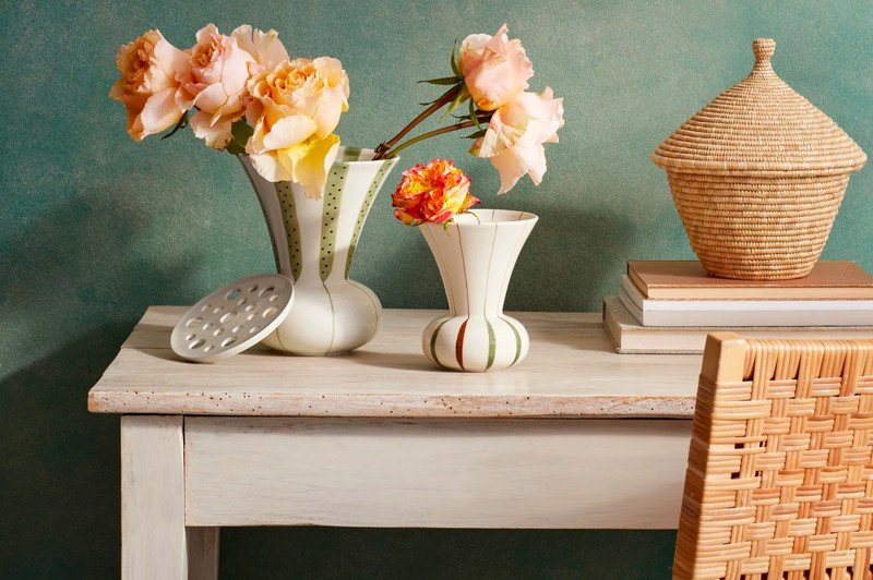 Ručně malovaná, z kameniny, bílá/zelená, ø 16 cm, výška 20 cm